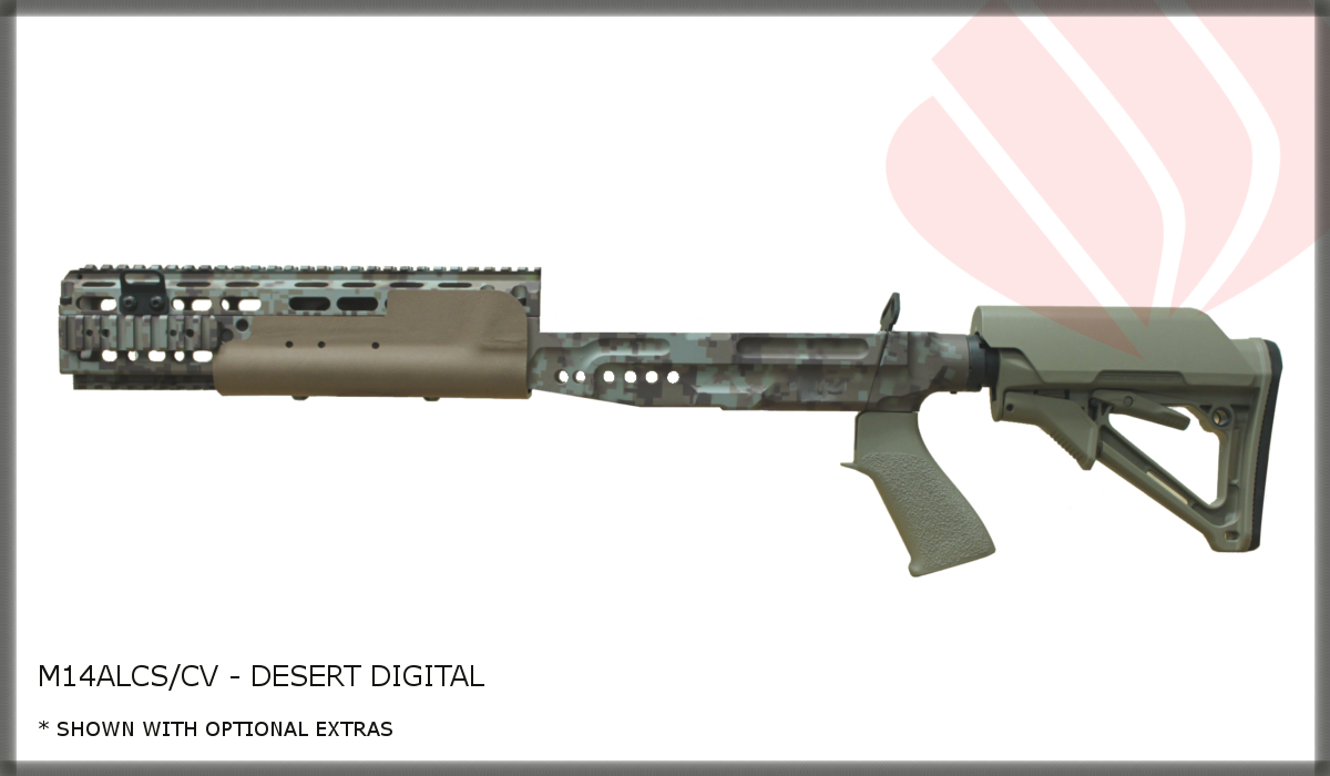 M14ALCS/CV - This EBR Tactical Aluminum Chassis Stock features an AR-15/M16 grip and a Mil-Spec M4 tube. This model fits standard or medium weight barrels.